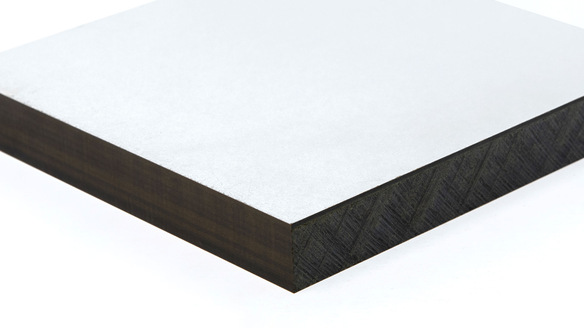Laminato stratificato ad alta pressione (HPL) composto da strati di carta kraft e da due facciate decorative, impregnati di resina termoindurente. Idrorepellente per natura, è particolarmente adatto per i luoghi umidi. Grazie all’eccellente resistenza agli urti, è adatto per usi intensivi. Igienico e adatto al contatto con alimenti quando prodotto in qualità antibatterica Sanitized®. Oltre agli standard nero e marrone, il nucleo è disponibile anche a tutto colore in accordo con la superficie. Qualità ignifuga su richiesta